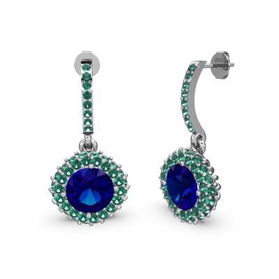 Lab safir ve yeşil kuvars 14 ayar beyaz altın küpe