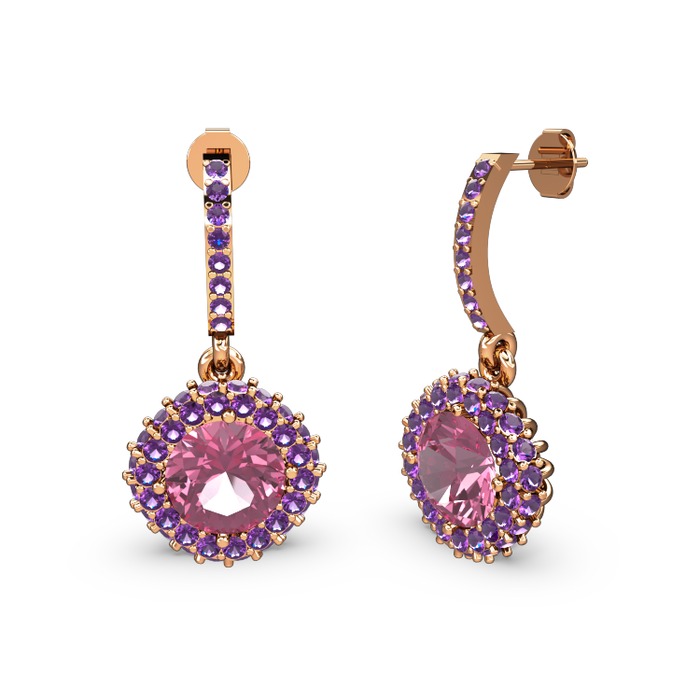 Pembe kuvars ve ametist 18 ayar rose altın küpe