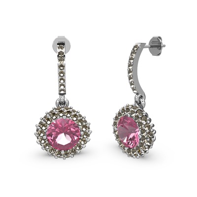 Pembe kuvars ve dumanlı kuvars 14 ayar beyaz altın küpe