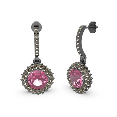 Pembe kuvars ve dumanlı kuvars 925 ayar siyah rodyum kaplama gümüş küpe
