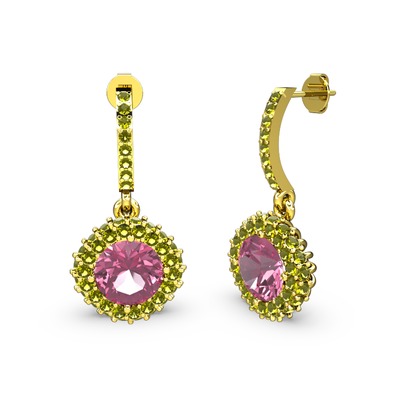 Pembe kuvars ve peridot 8 ayar altın küpe