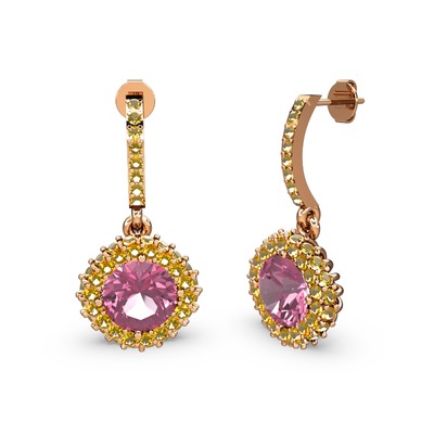 Pembe kuvars ve sitrin 8 ayar rose altın küpe