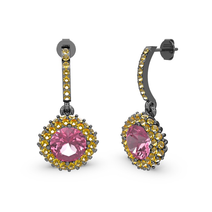 Pembe kuvars ve sitrin 925 ayar siyah rodyum kaplama gümüş küpe