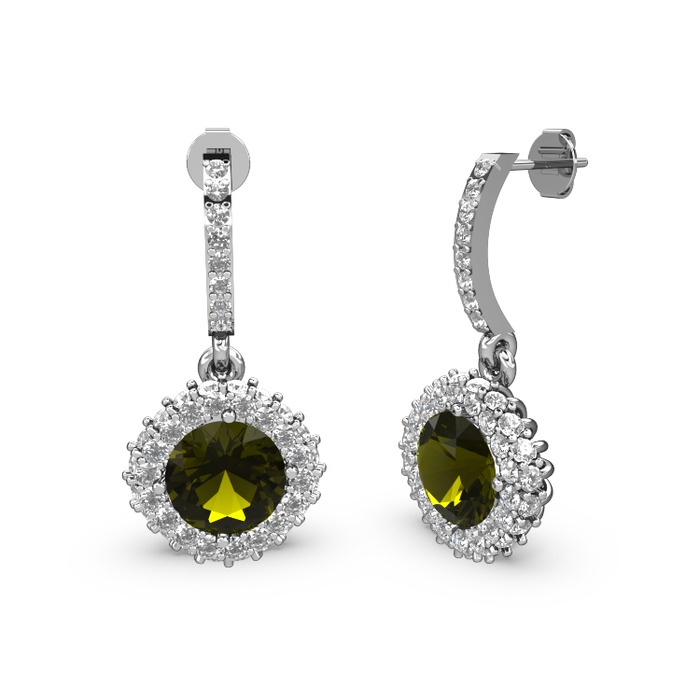 Peridot ve beyaz zirkon 8 ayar beyaz altın küpe