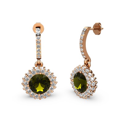 Peridot ve beyaz zirkon 8 ayar rose altın küpe