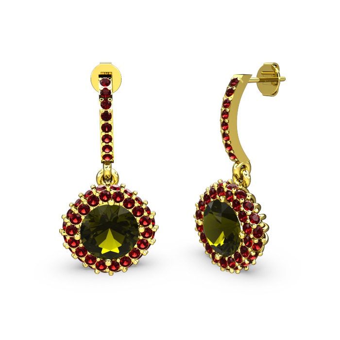 Peridot ve garnet 14 ayar altın küpe