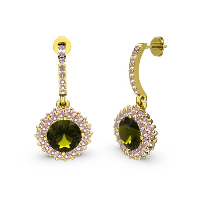 Peridot ve pembe kuvars 925 ayar altın kaplama gümüş küpe