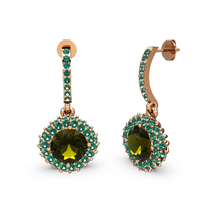 Peridot ve yeşil kuvars 925 ayar rose altın kaplama gümüş küpe