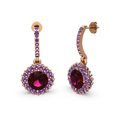 Rodolit garnet ve ametist 14 ayar rose altın küpe