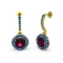 Rodolit garnet ve lab safir 14 ayar altın küpe