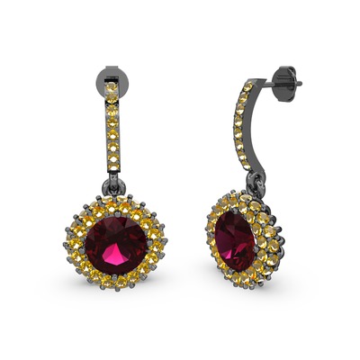 Rodolit garnet ve sitrin 925 ayar siyah rodyum kaplama gümüş küpe