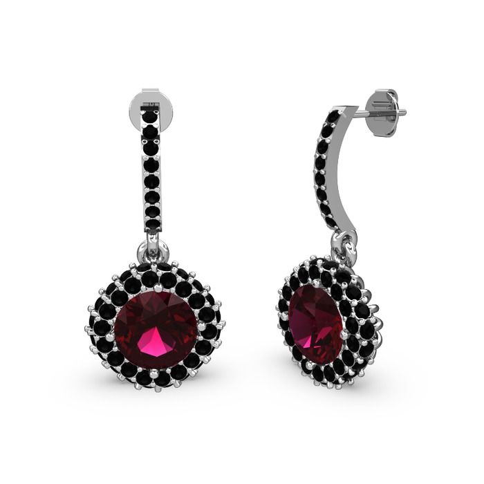 Rodolit garnet ve siyah zirkon 925 ayar gümüş küpe