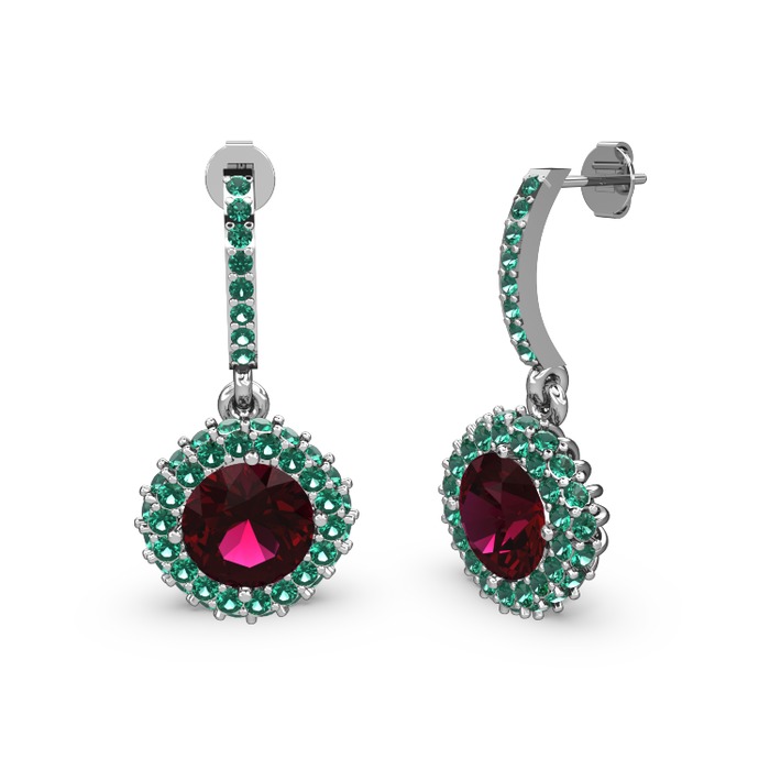 Rodolit garnet ve yeşil kuvars 14 ayar beyaz altın küpe