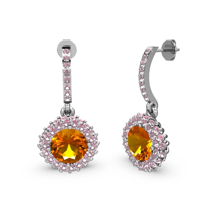 Sitrin ve pembe kuvars 18 ayar beyaz altın küpe