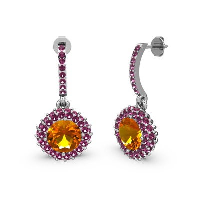 Sitrin ve rodolit garnet 925 ayar gümüş küpe
