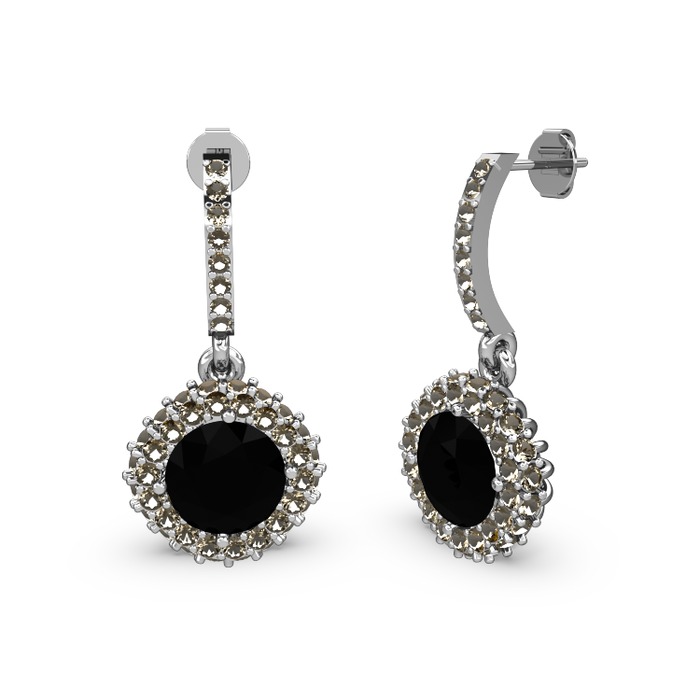 Siyah zirkon ve dumanlı kuvars 14 ayar beyaz altın küpe