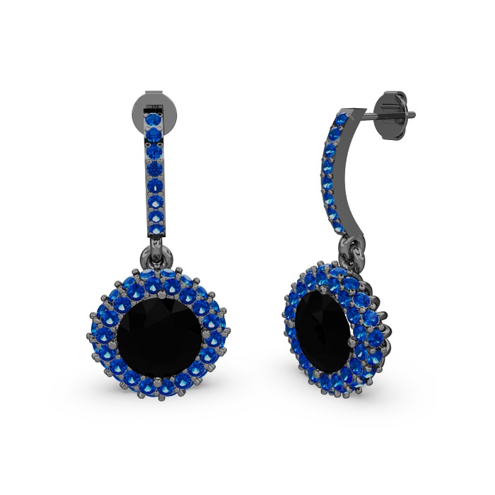 Siyah zirkon ve lab safir 925 ayar siyah rodyum kaplama gümüş küpe