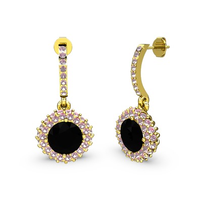 Siyah zirkon ve pembe kuvars 14 ayar altın küpe