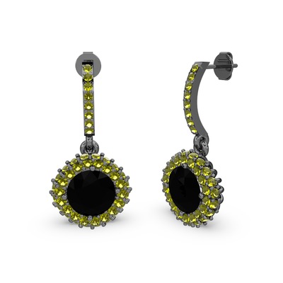 Siyah zirkon ve peridot 925 ayar siyah rodyum kaplama gümüş küpe
