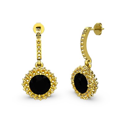 Siyah zirkon ve sitrin 18 ayar altın küpe