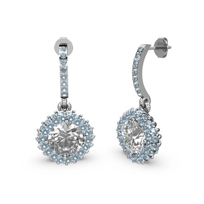 Swarovski ve akuamarin 14 ayar beyaz altın küpe
