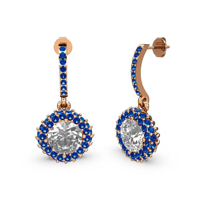Swarovski ve lab safir 14 ayar rose altın küpe