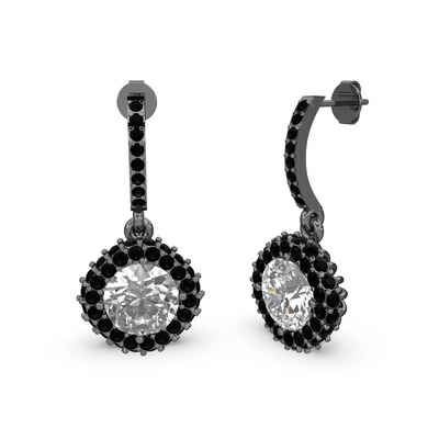 Swarovski ve siyah zirkon 925 ayar siyah rodyum kaplama gümüş küpe