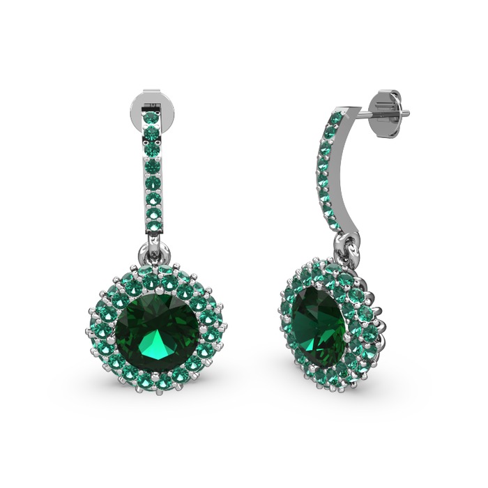 Yeşil kuvars 8 ayar beyaz altın küpe