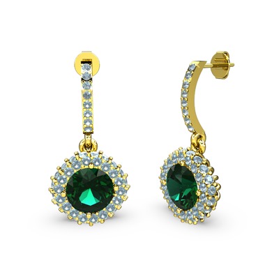 Yeşil kuvars ve akuamarin 925 ayar altın kaplama gümüş küpe
