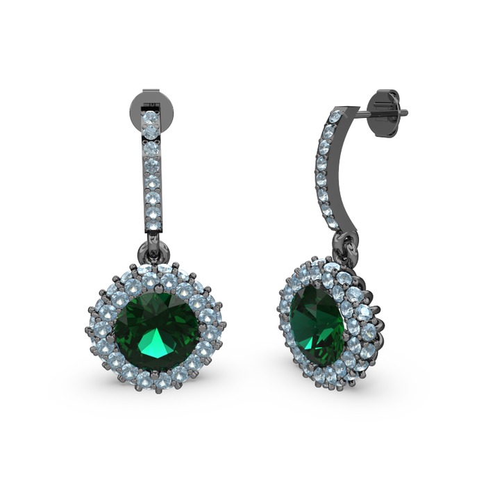 Yeşil kuvars ve akuamarin 925 ayar siyah rodyum kaplama gümüş küpe