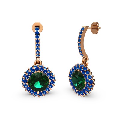 Yeşil kuvars ve lab safir 925 ayar rose altın kaplama gümüş küpe