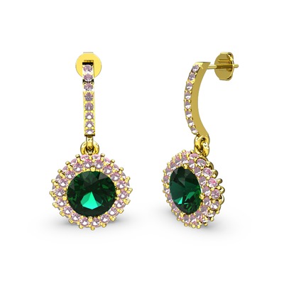 Yeşil kuvars ve pembe kuvars 8 ayar altın küpe