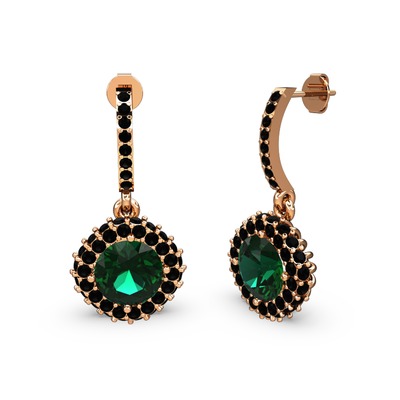 Yeşil kuvars ve siyah zirkon 14 ayar rose altın küpe