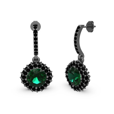 Yeşil kuvars ve siyah zirkon 925 ayar siyah rodyum kaplama gümüş küpe