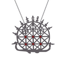 Pırlanta ve kök yakut 925 ayar siyah rodyum kaplama gümüş kolye (0.1232 karat, 40 cm gümüş rolo zincir)