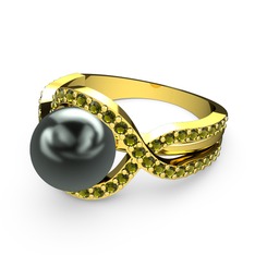 Siyah inci, swarovski ve dumanlı kuvars 14 ayar altın yüzük