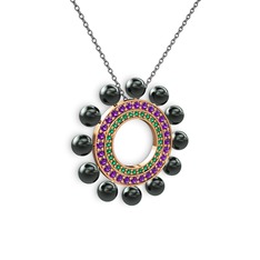 Siyah inci, ametist ve yeşil kuvars 8 ayar rose altın kolye (40 cm altın rolo zincir)