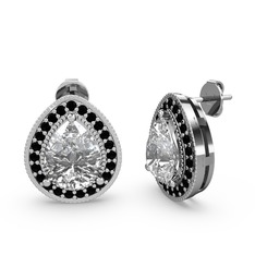 Siyah zirkon ve swarovski 18 ayar beyaz altın küpe