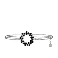 Siyah zirkon 18 ayar beyaz altın kolye (40 cm gümüş rolo zincir)