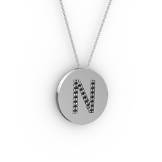 Siyah zirkon 925 ayar siyah rodyum kaplama gümüş kolye (40 cm gümüş rolo zincir)