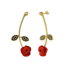 Pembe inci ve siyah zirkon 925 ayar altın kaplama gümüş küpe