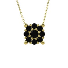 Siyah zirkon ve pırlanta 925 ayar altın kaplama gümüş kolye (0.1056 karat, 40 cm gümüş rolo zincir)