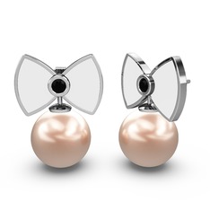 Siyah inci ve siyah zirkon 925 ayar rose altın kaplama gümüş küpe