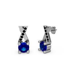 Lab safir ve siyah zirkon 18 ayar beyaz altın küpe
