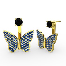 Lab safir ve siyah zirkon 14 ayar rose altın küpe