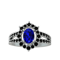 Lab safir ve siyah zirkon 18 ayar beyaz altın yüzük