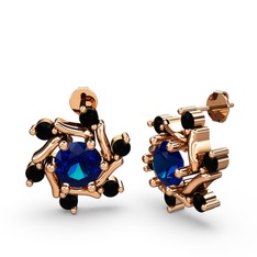 Lab safir, siyah zirkon ve beyaz zirkon 18 ayar rose altın küpe