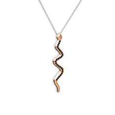 Siyah zirkon 14 ayar rose altın kolye (40 cm gümüş rolo zincir)