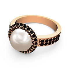Inci ve siyah zirkon 18 ayar rose altın yüzük