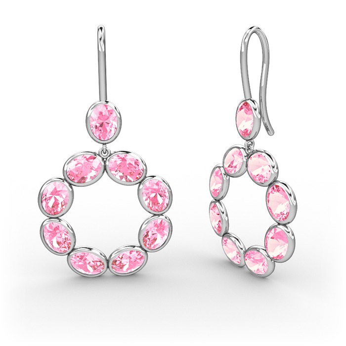 Pembe kuvars 18 ayar beyaz altın küpe